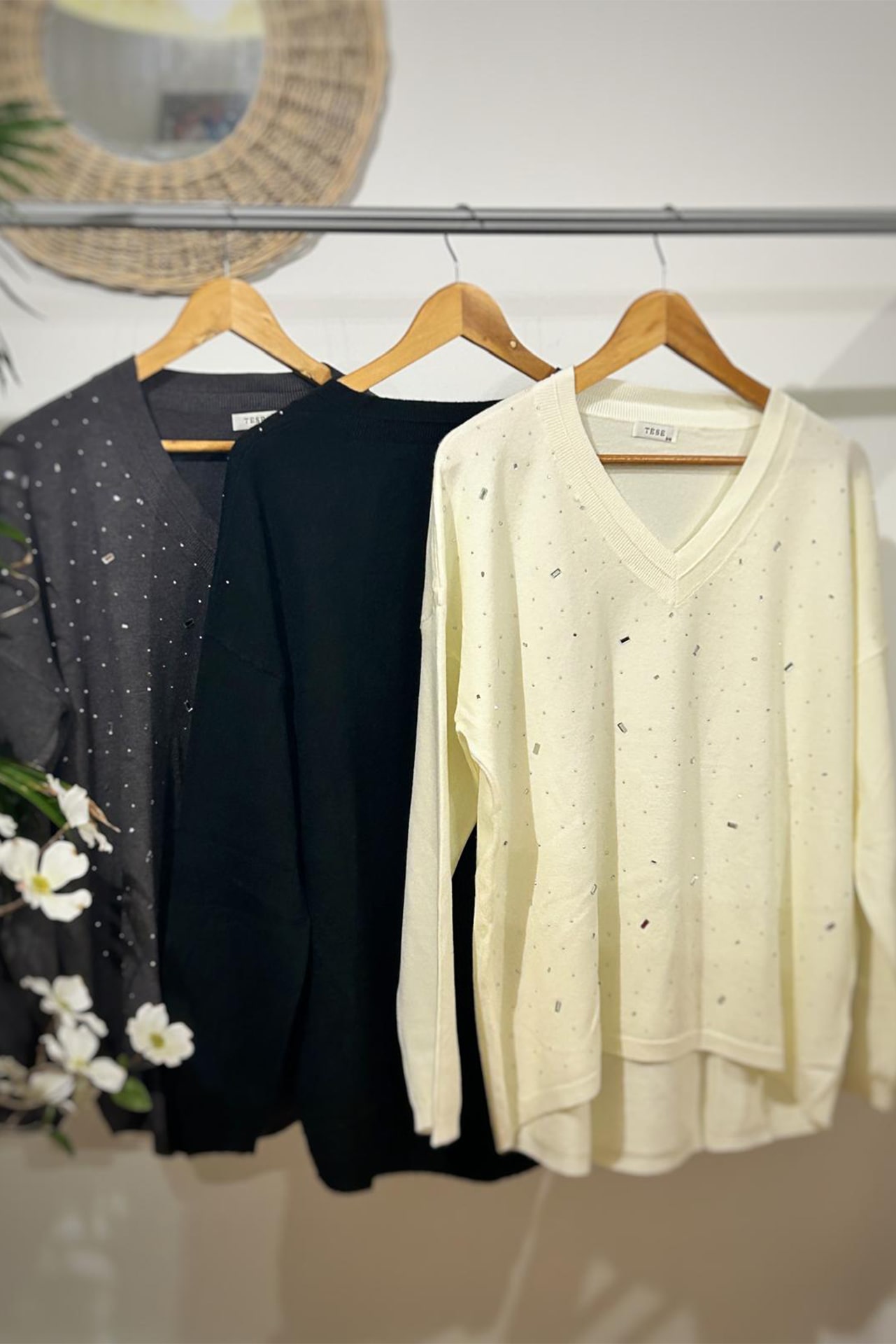 Jersey de Mujer Cuello Pico con Detalle Brillante