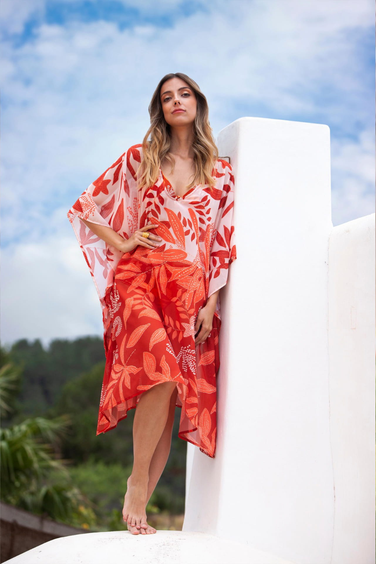 Vestido kaftán de playa con estampado tropical – Deidad 66261