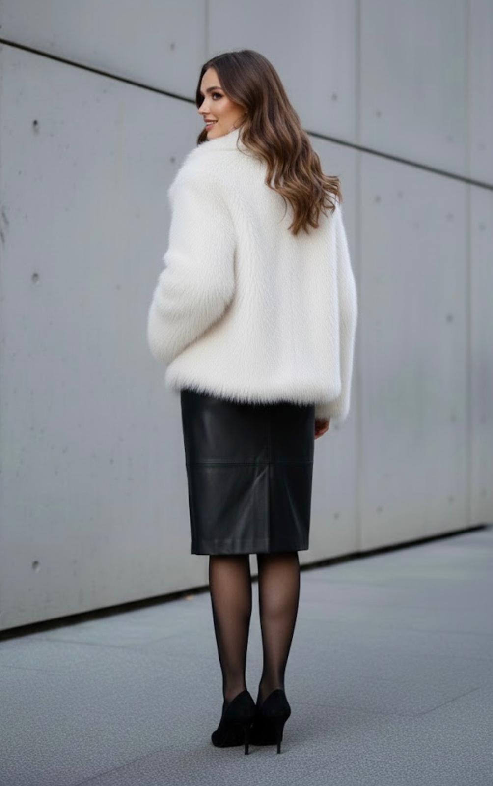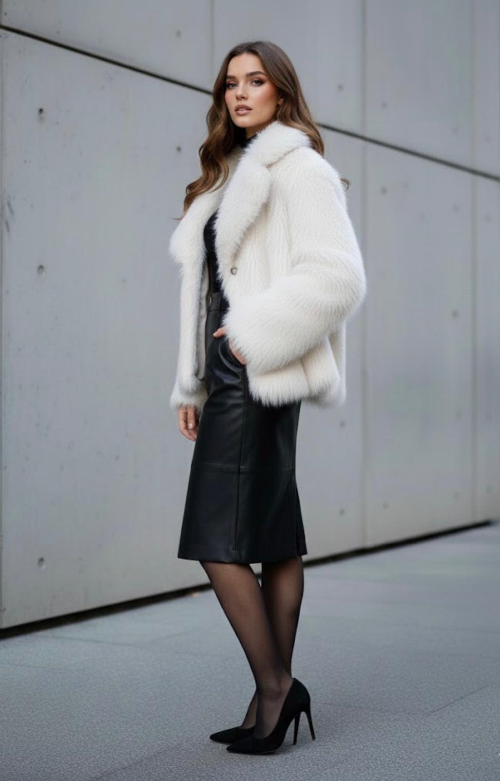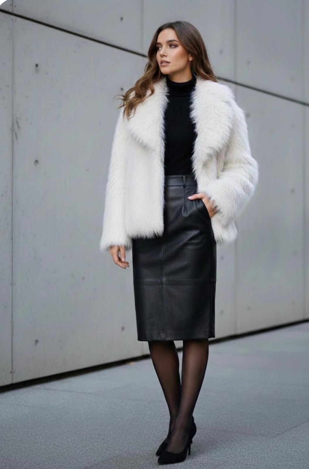 Abrigo blanco efecto pelo premium-Elegancia atemporal