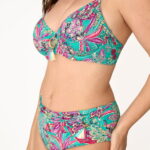 La parte inferior es una braga de corte brasileño, diseñada para estilizar la silueta y realzar las curvas de forma natural. Confeccionado en una microfibra elástica de tacto suave y secado rápido, este conjunto ofrece una comodidad excepcional y una alta resistencia al cloro y al sol.
