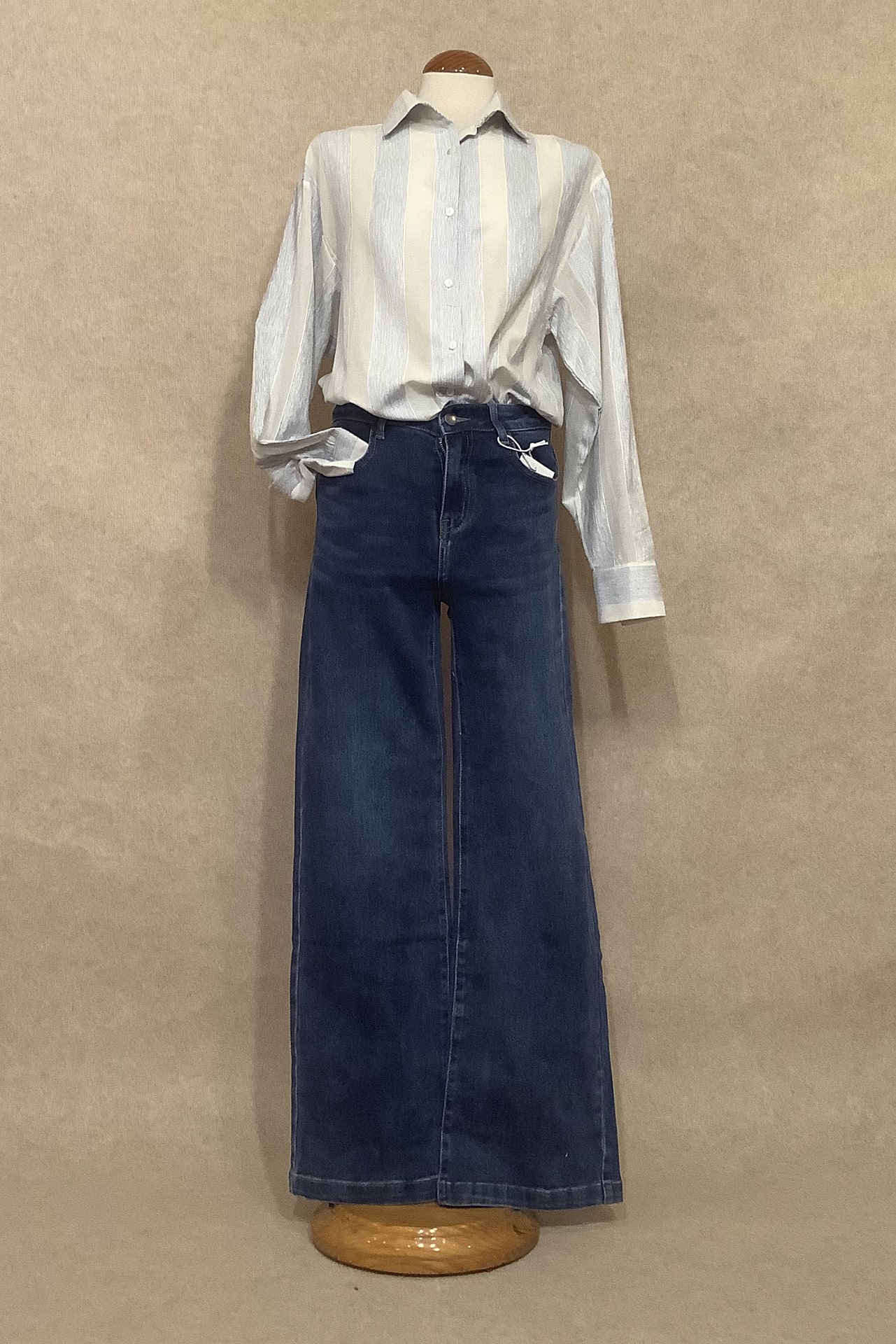 Camisa de mujer básica y versátil que no puede faltar en tu armario. Con un diseño camisero clásico y rayas anchas verticales, estiliza la silueta y aporta un aire fresco y moderno. Su corte recto asegura comodidad y libertad de movimiento, convirtiéndola en la opción ideal tanto para looks casuales como para combinaciones más elegantes.