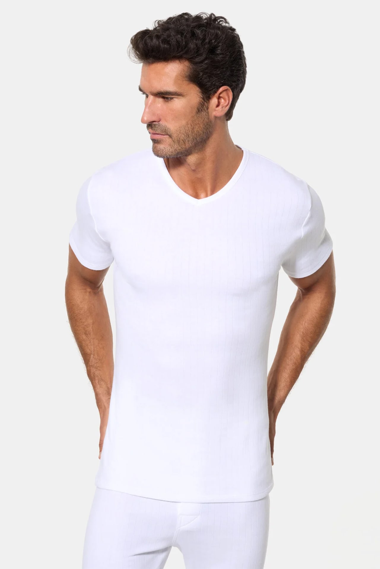 Camiseta interior térmica Abanderado AS00205 de manga corta con cuello en V. 100% algodón, tejido Interlock con interior afelpado para máximo confort.