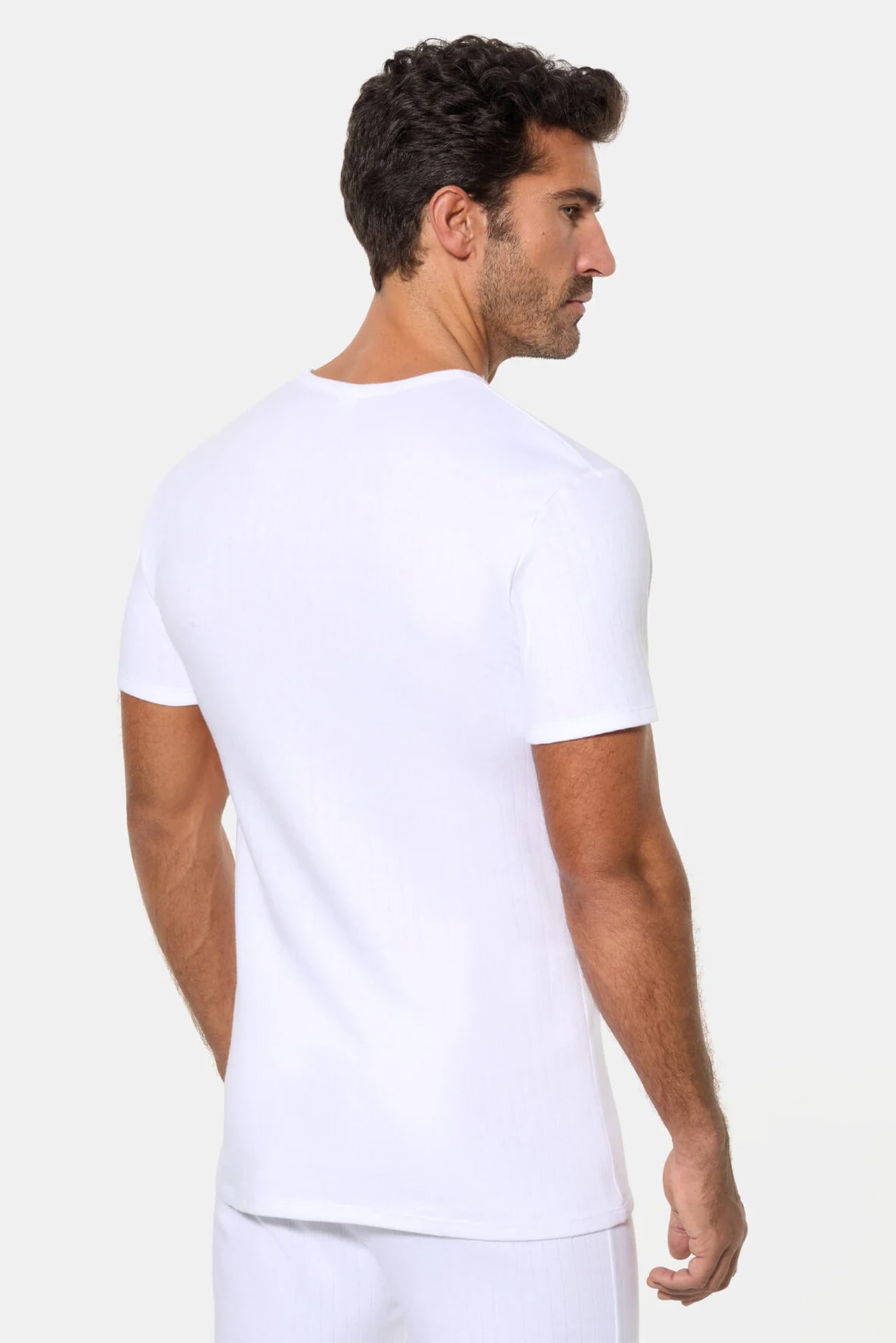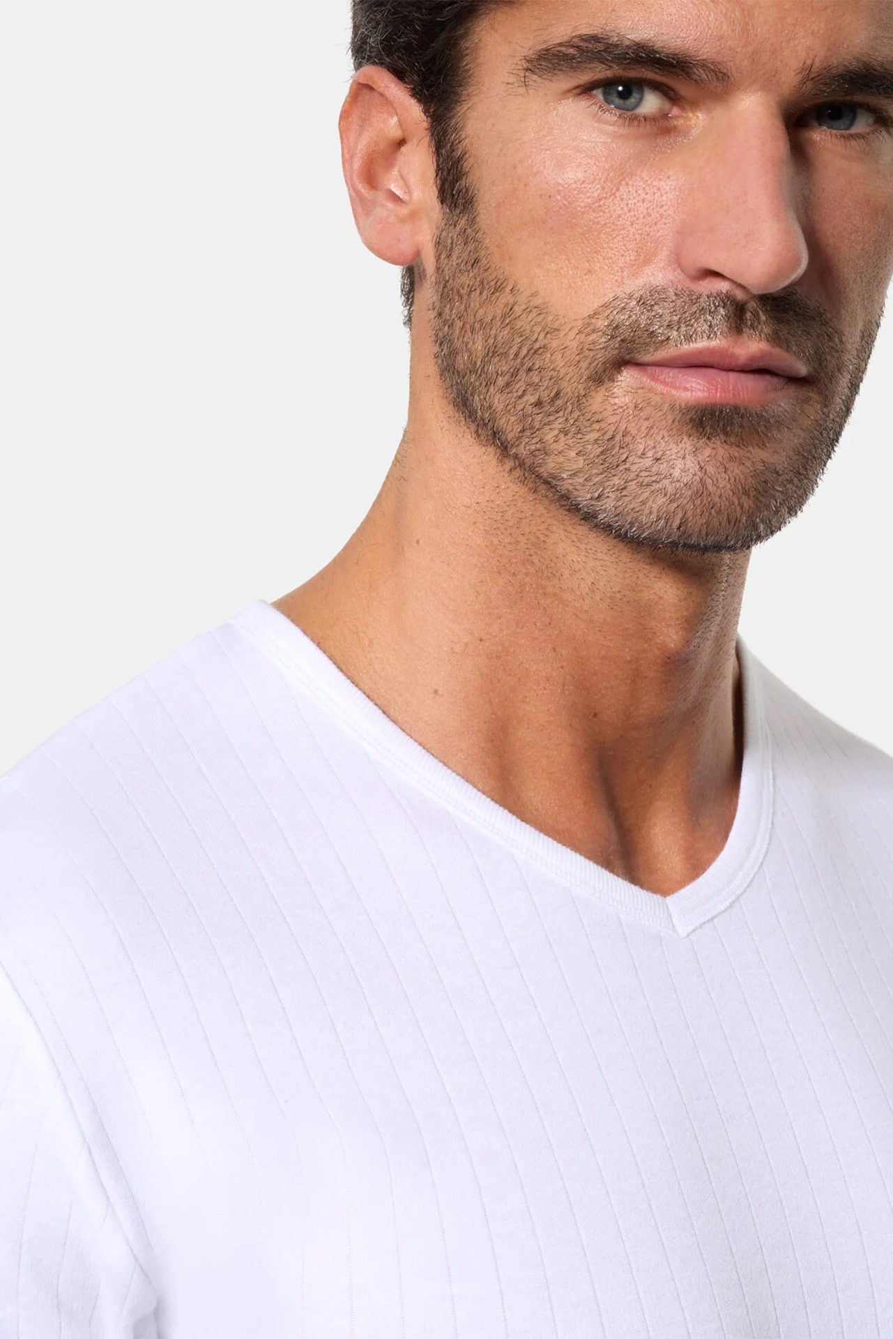 Camiseta interior térmica Abanderado AS00205 de manga corta con cuello en V. 100% algodón, tejido Interlock con interior afelpado para máximo confort.