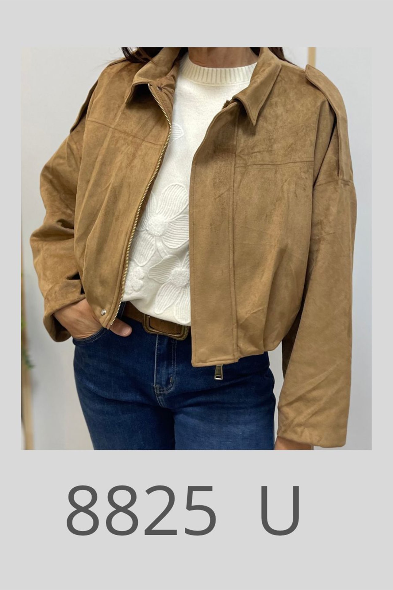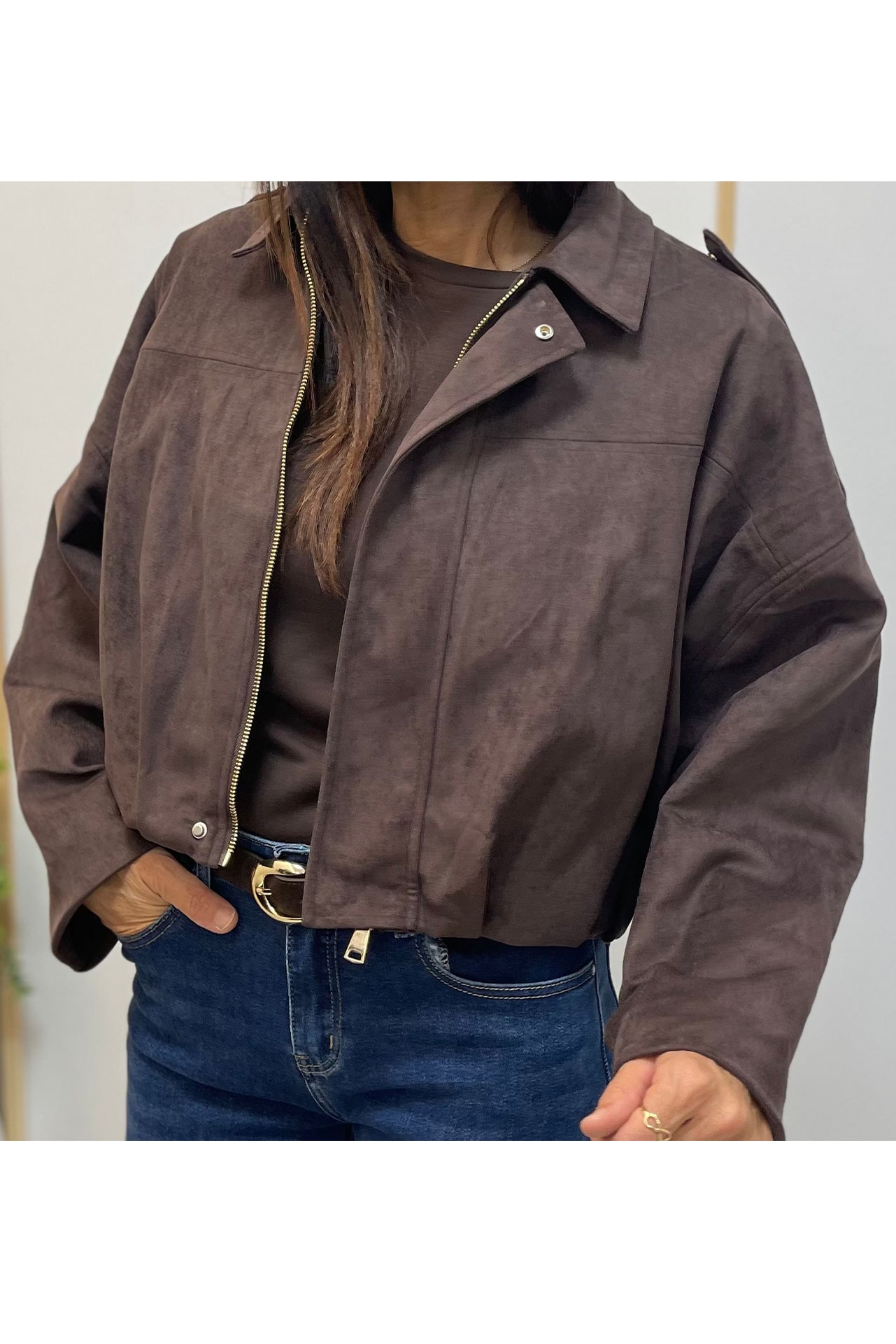 Chaqueta corta efecto ante | Diseño oversize con cremallera y solapas