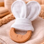 Chupetero de tela para bebé personalizado con cierre de madera de haya