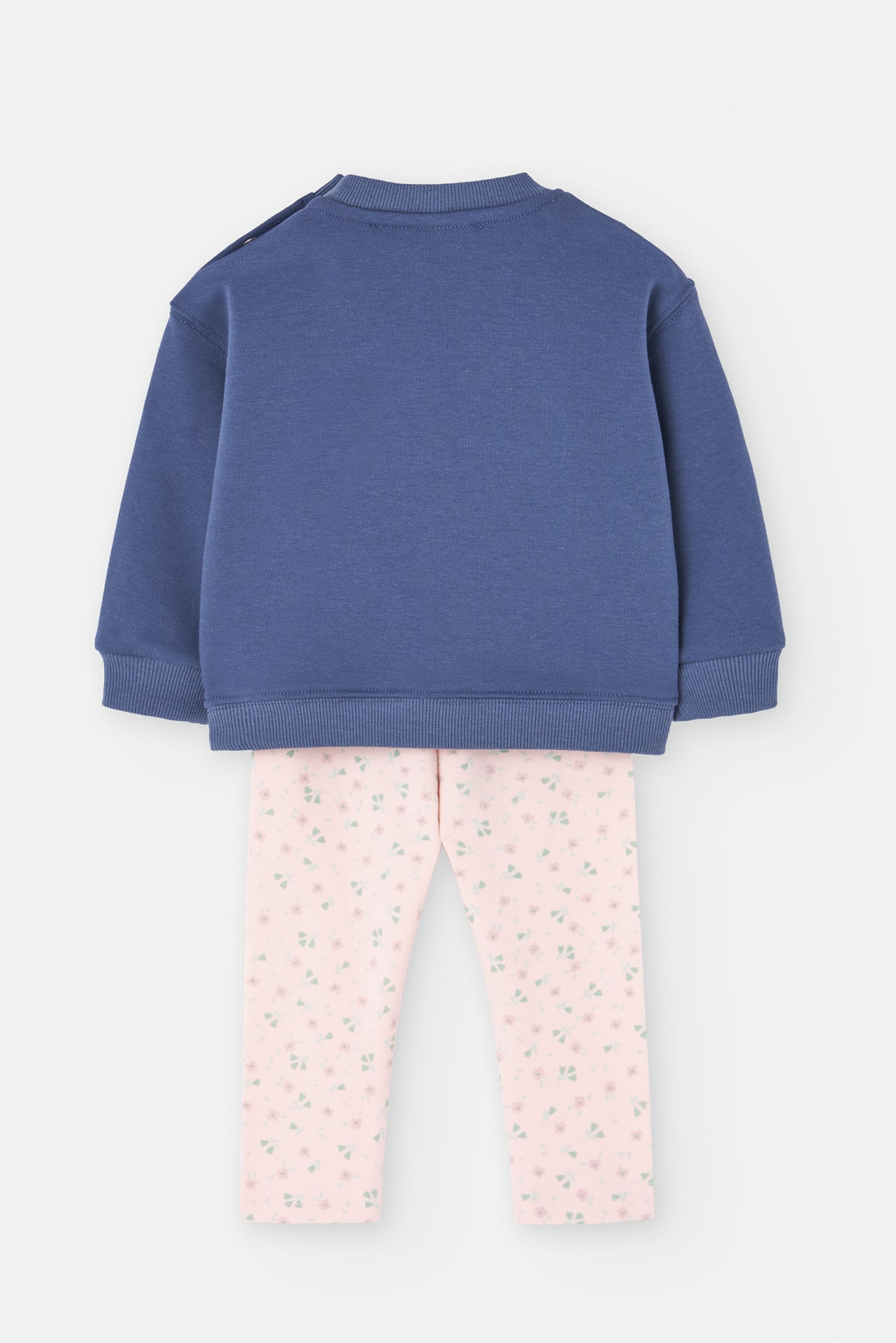 Conjunto bebé 2 piezas azul y rosa con sudadera California y pantalón floral. Cálido, suave y perfecto para el día a día.