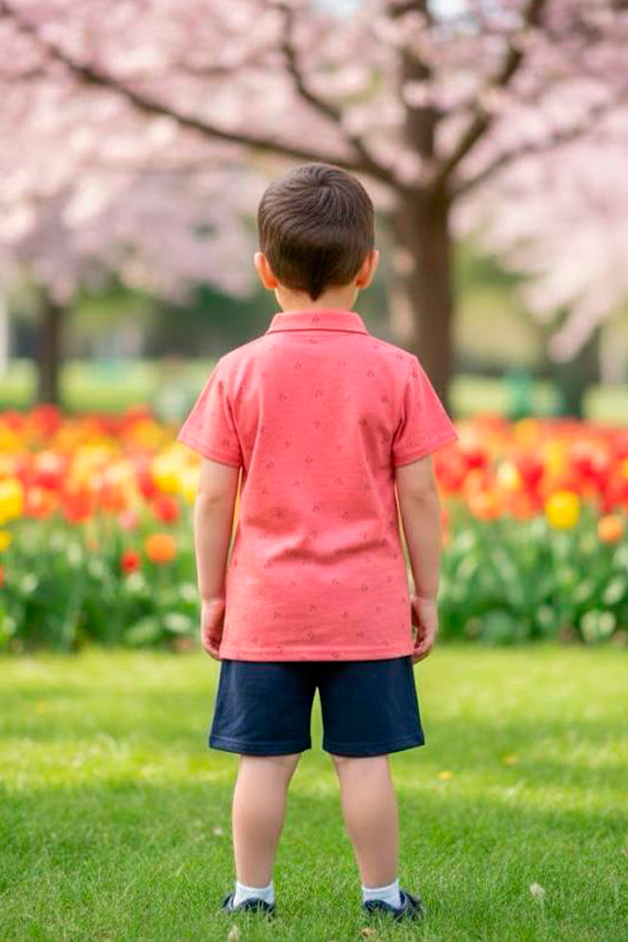 Conjunto infantil: Pantalón azul y polo de manga corta coral