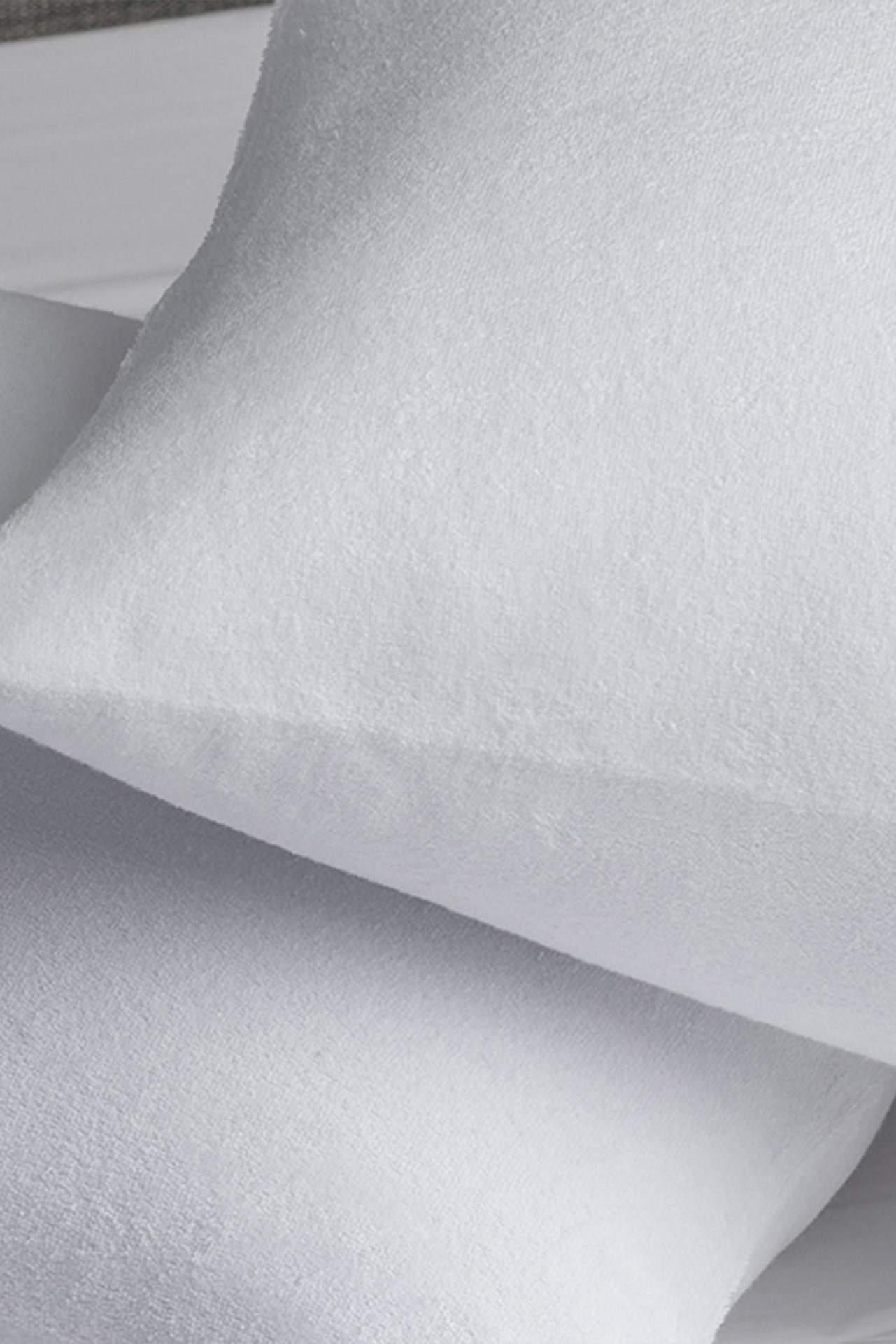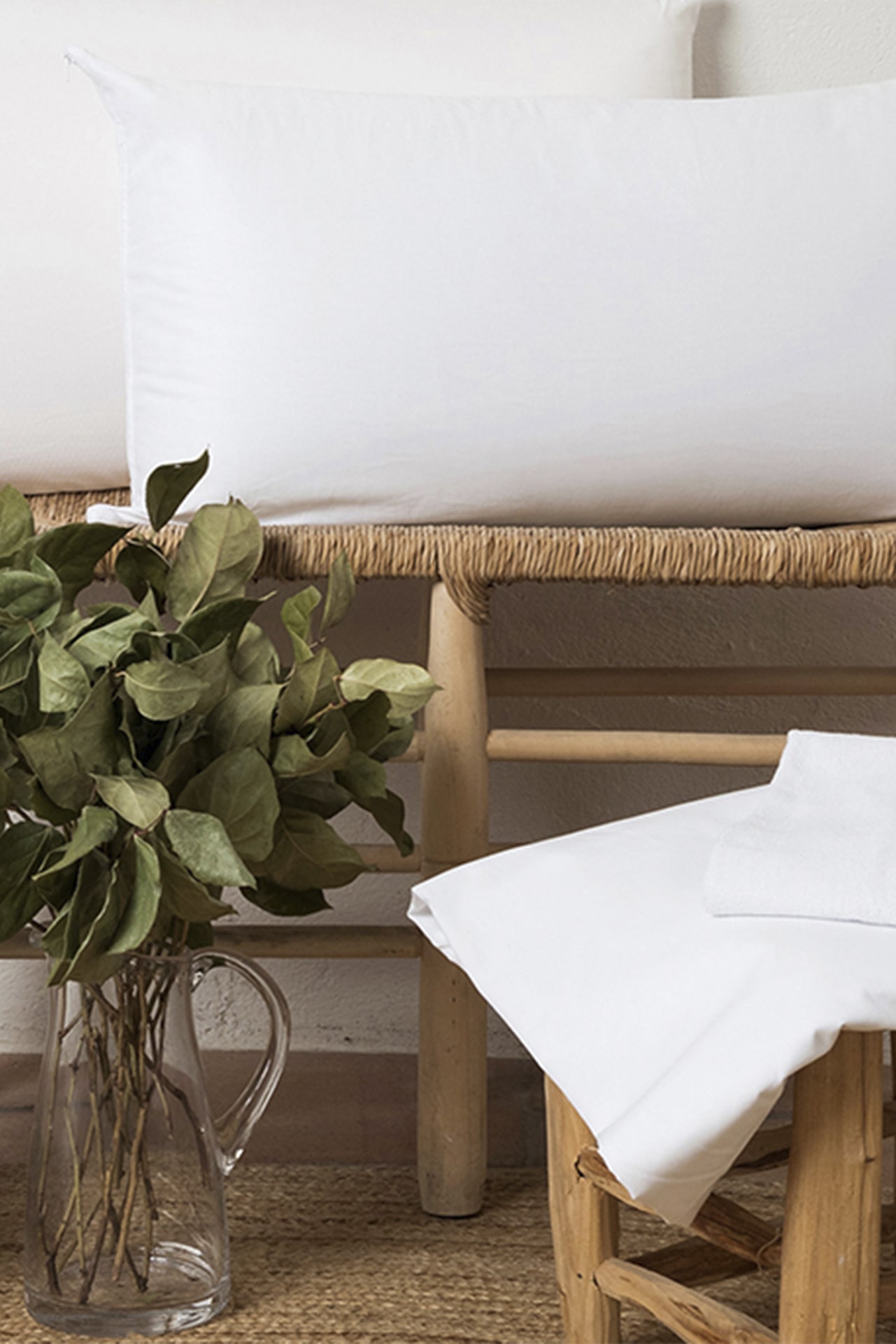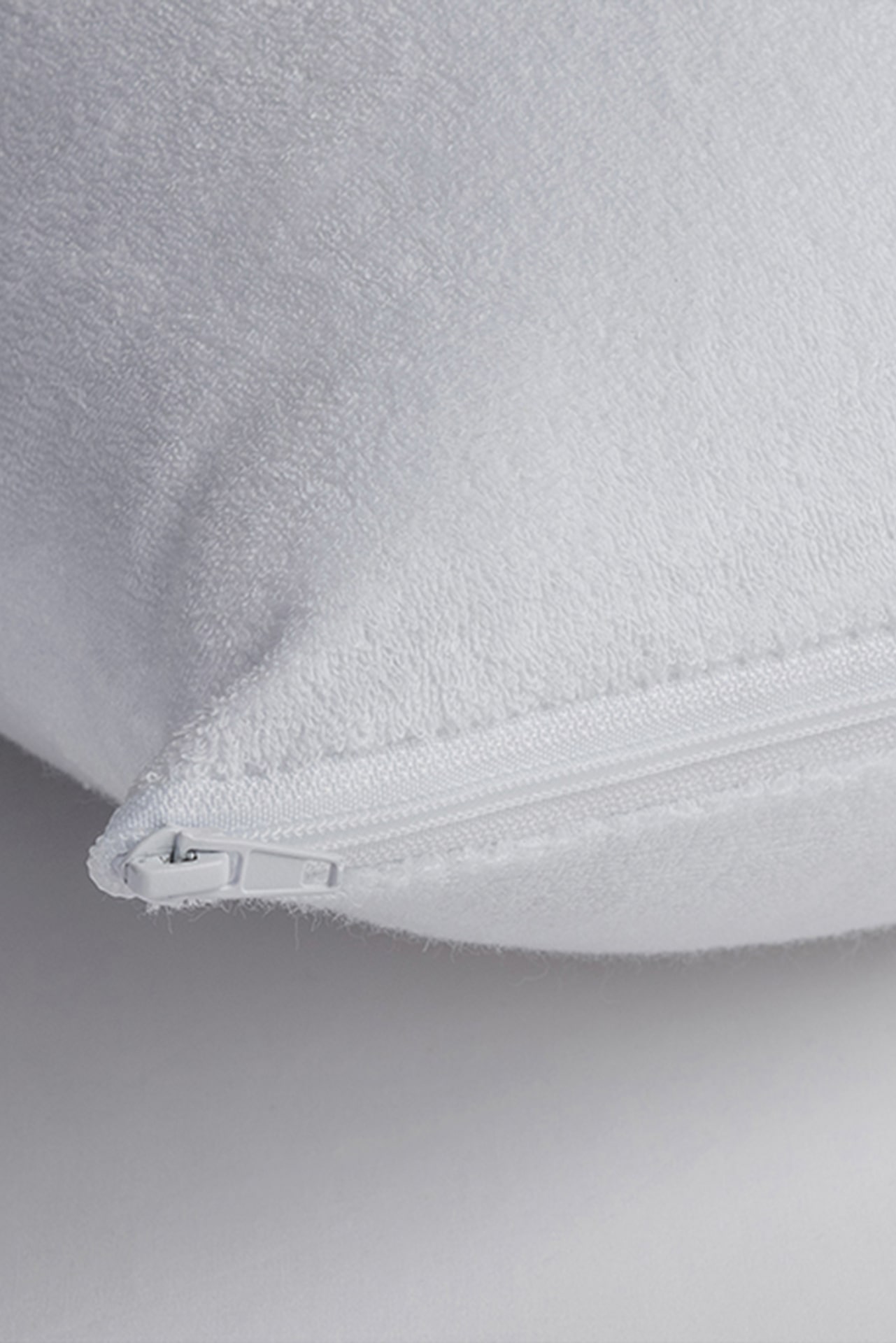 Funda de almohada de algodón rizo natural con tratamiento antiácaros vegetal y cremallera. Protección eficaz, suave y transpirable.