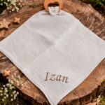 Mordedor de madera de haya con muselina 100% algodón personalizado para bebé