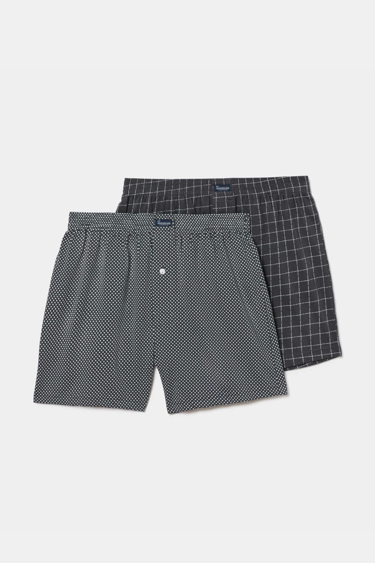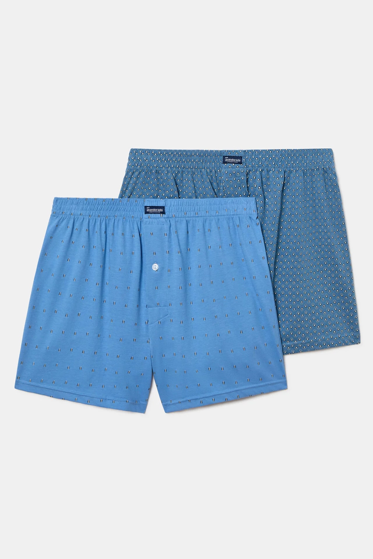 Pack de 2 boxers abiertos Abanderado AS00100 en algodón 100%, con estampados y colores surtidos. Suaves, transpirables y cómodos para el uso diario. Tonos grises o tonos azules aleatorio.