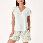 Tejido Ligero y Transpirable: Confeccionado en un tejido suave y fluido, este pijama ofrece una sensación muy agradable sobre la piel, ideal para mantenerte fresca y cómoda durante toda la noche.