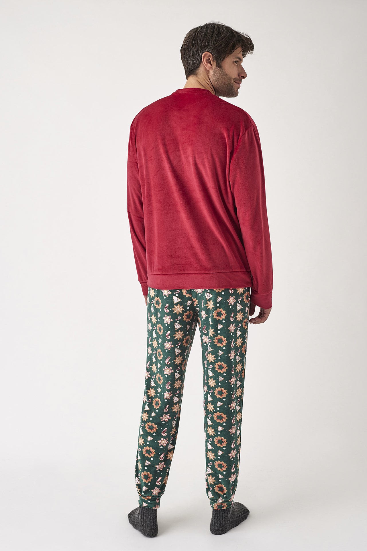 Pijama largo de hombre en terciopelo navideño con estampado Christmas Bakery