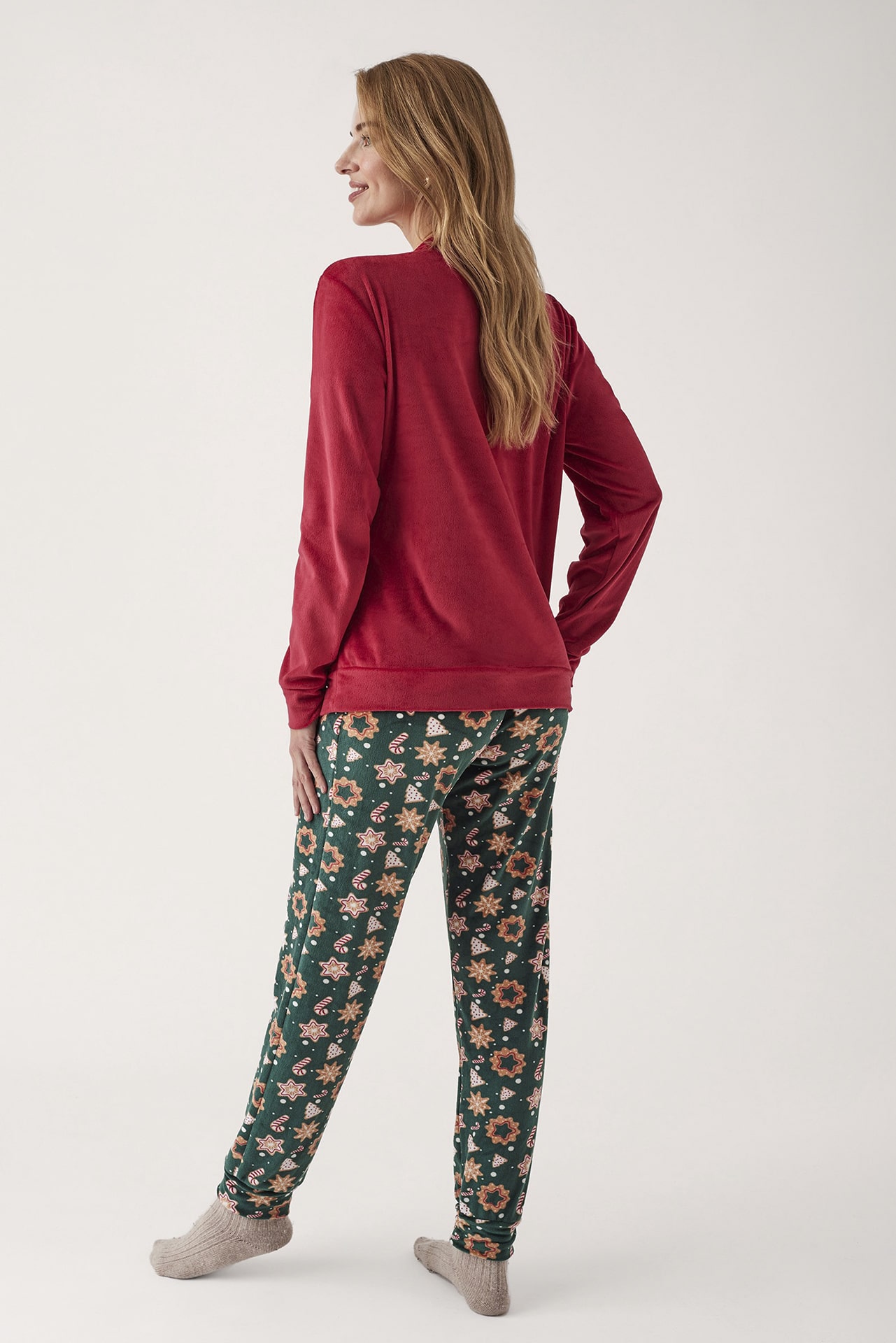 Pijama navideño de terciopelo Promise con estampado de galletas navideñas