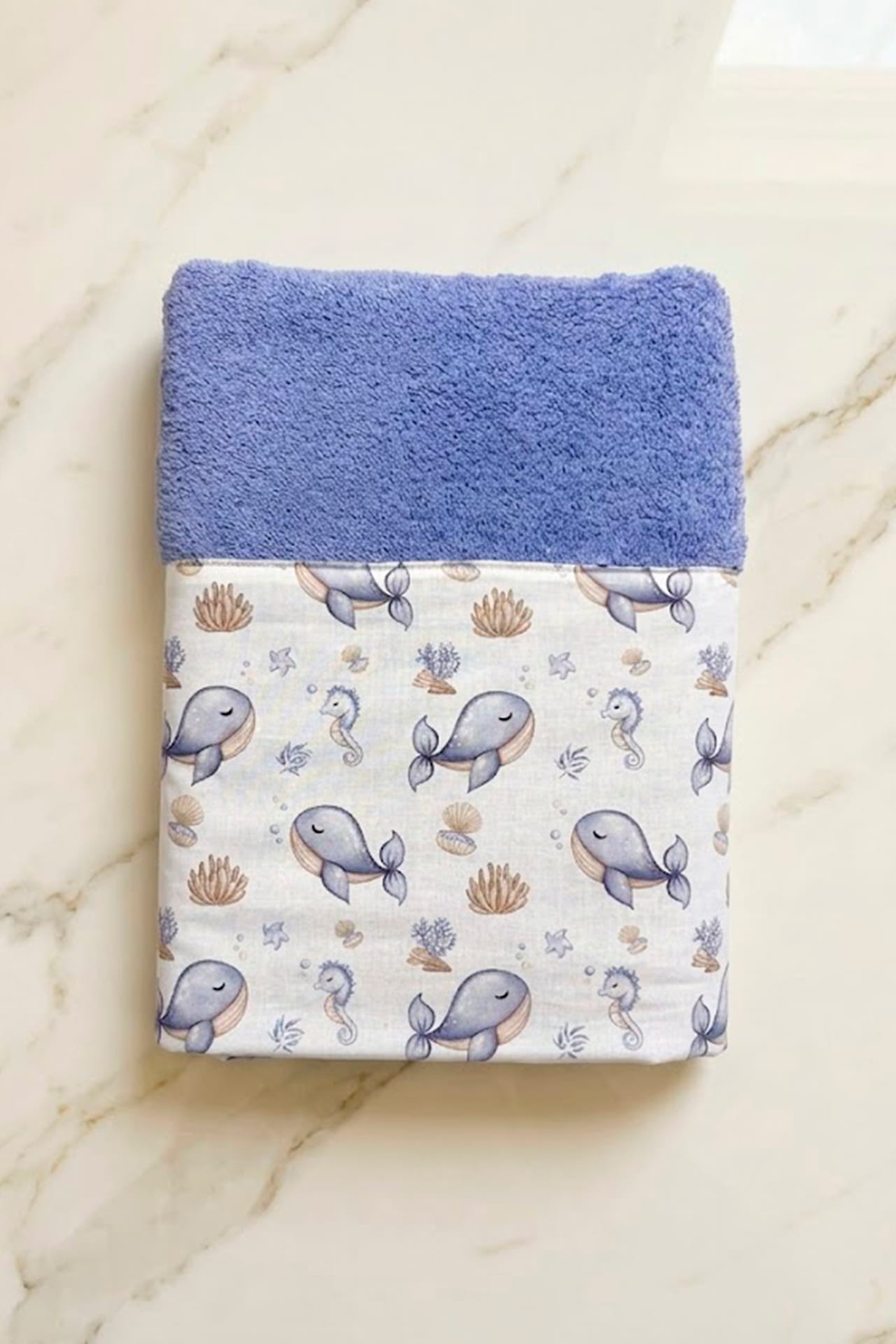 Personalízalo eligiendo el tipo de tejido principal (estampado o liso), el color de la toalla, el texto bordado (nombre o iniciales), el color del bordado y la tipografía. Es un regalo ideal y único para baby showers, nacimientos o canastillas de bienvenida.