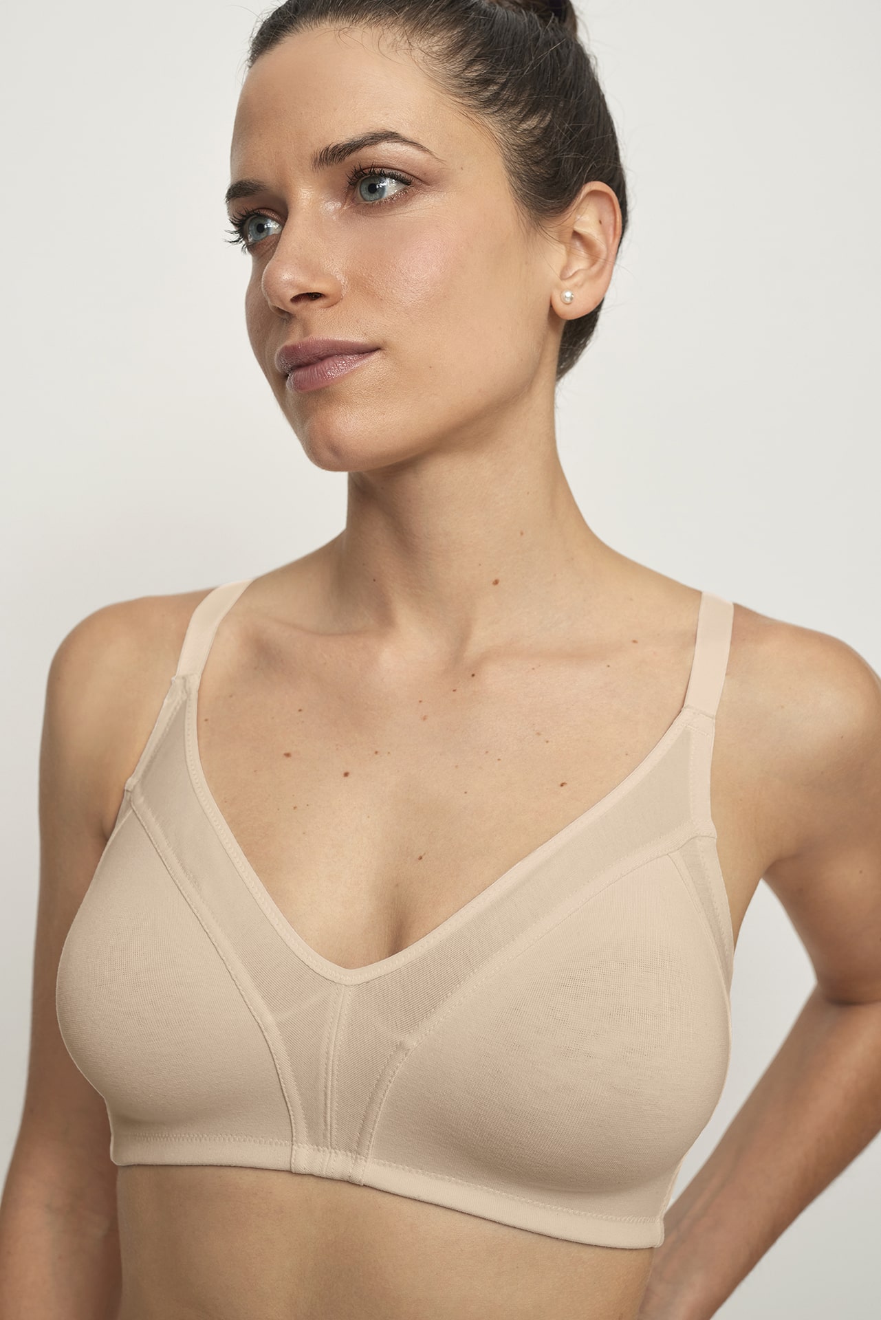 Fabricado en una combinación de 47% poliamida, 42% algodón y 11% elastano, este sujetador ofrece transpirabilidad, elasticidad y suavidad al contacto con la piel. Disponible en colores blanco, tierra y blanco, es una prenda versátil que se adapta a cualquier estilo.