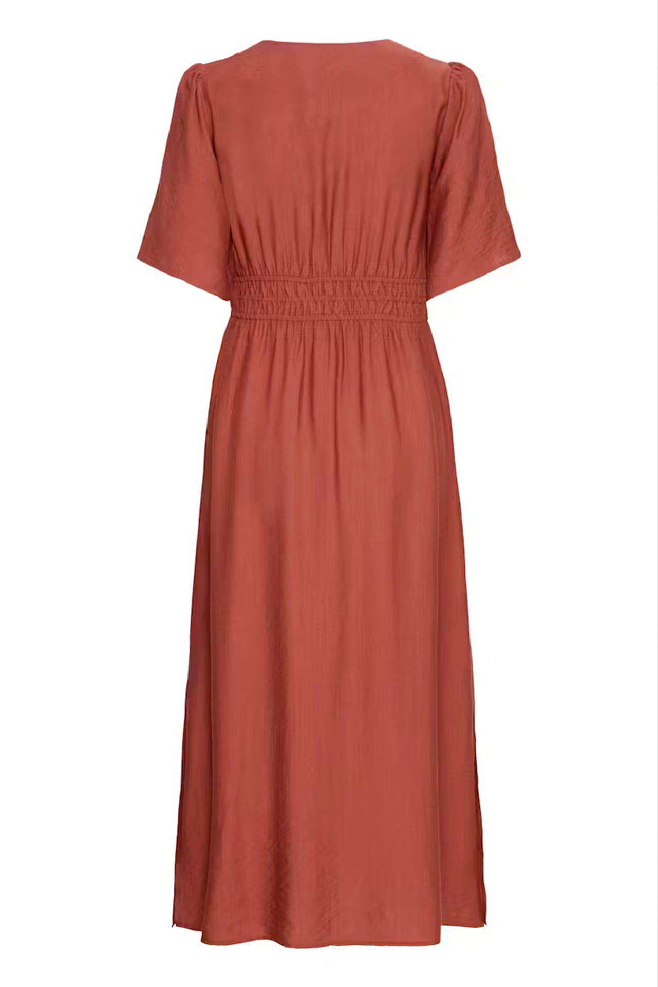 La clave de su confort está en su tejido premium: una mezcla de Lino (55%) y Viscosa (45%). Esta composición permite disfrutar de la transpirabilidad y la textura noble del lino, mientras que la viscosa aporta suavidad y evita la rigidez excesiva, facilitando que el vestido mantenga una caída fluida sobre el cuerpo.